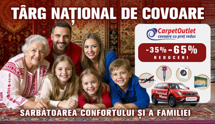Distribuie și spune-le prietenilor despre această promoție spectaculoasă – Prețuri de Târg, premii de vis și cadouri surprinzătoare, doar la Carpet Outlet!