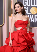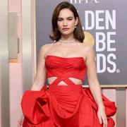 Lily, care a fost nominalizata la categoria Cea mai buna actrita intr-un Serial limitat, Serial de antologie sau Film de televiziune pentru rolul sau din „Pam si Tommy”, s-a distrat pe cinste la eveniment. Aceasta a optat pentru o rochie lunga, plina de volane, de un rosu aprins, care a atras imediat atentia invitatilor, dar si a fotoreporterilor care au fotografiat-o din toate unghiurile.