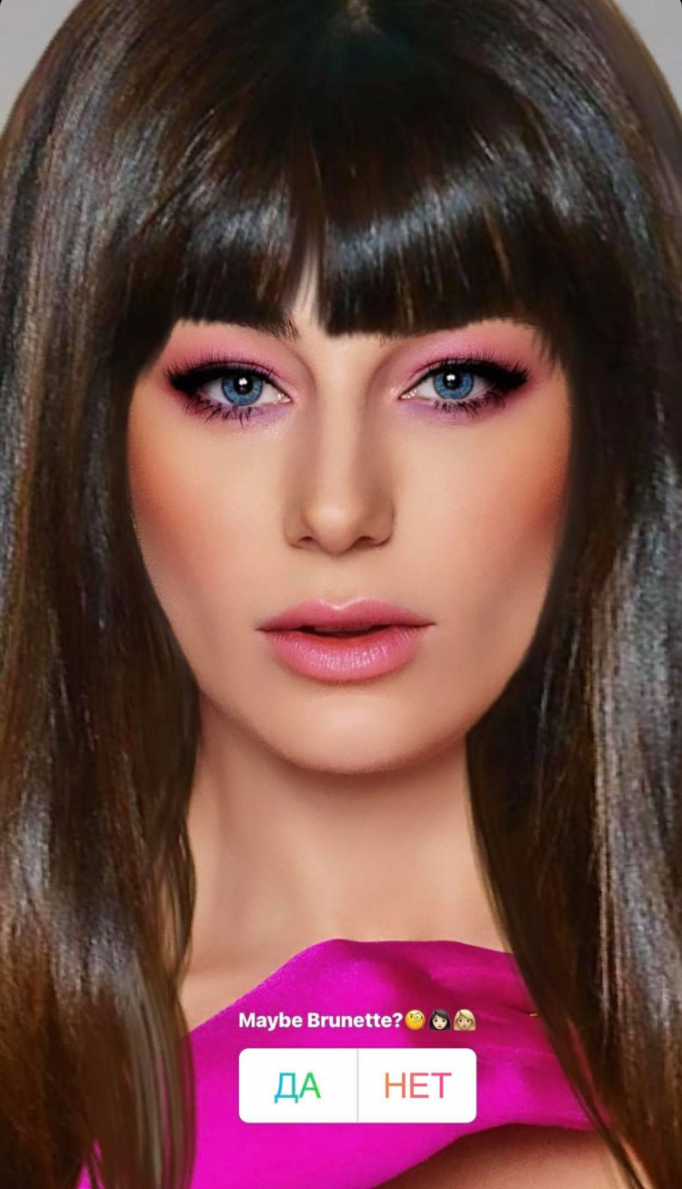 Aceasta s-a fotografiat cu ajutorul unei aplicatii din telefon avand parul brunet si si-a intrebat fanii daca o prinde culoarea: "Poate bruneta?", lasand fanii sa raspunda cu "da" sau "nu". Internautii au raspuns mai mult nu decat da.