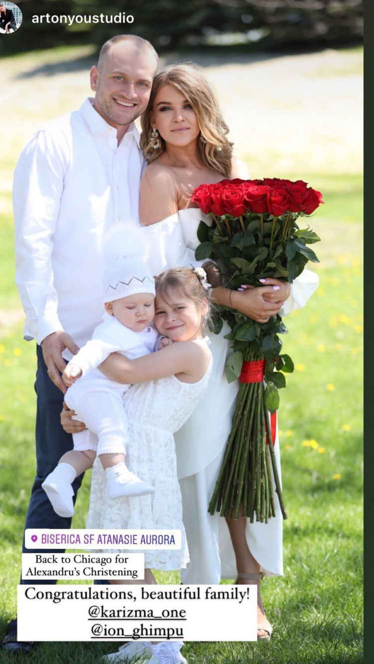 De remarcat este faptul ca Karizma, alias Olga Fesenco arata minunat, dupa ce a devenit mamica pentru a doua ora. Aceasta a schimbat doua rochii in timpul sarabtorii. La biserica a imbracat o rochie alba, iar la restaurant a ales una de culoare rosie, senzuala. Ambele o prindeau de minune.