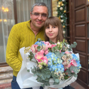 De asemenea, in imagine se poate observa si buchhetul imens de flori pe care l-a primit fata din partea tatalui sau.