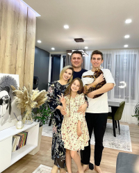 Voevutki s-a fotografiat alaturi de sotul ei, dar si cei doi copii, Bogdan si Ariadna, in livingul apartamentului.