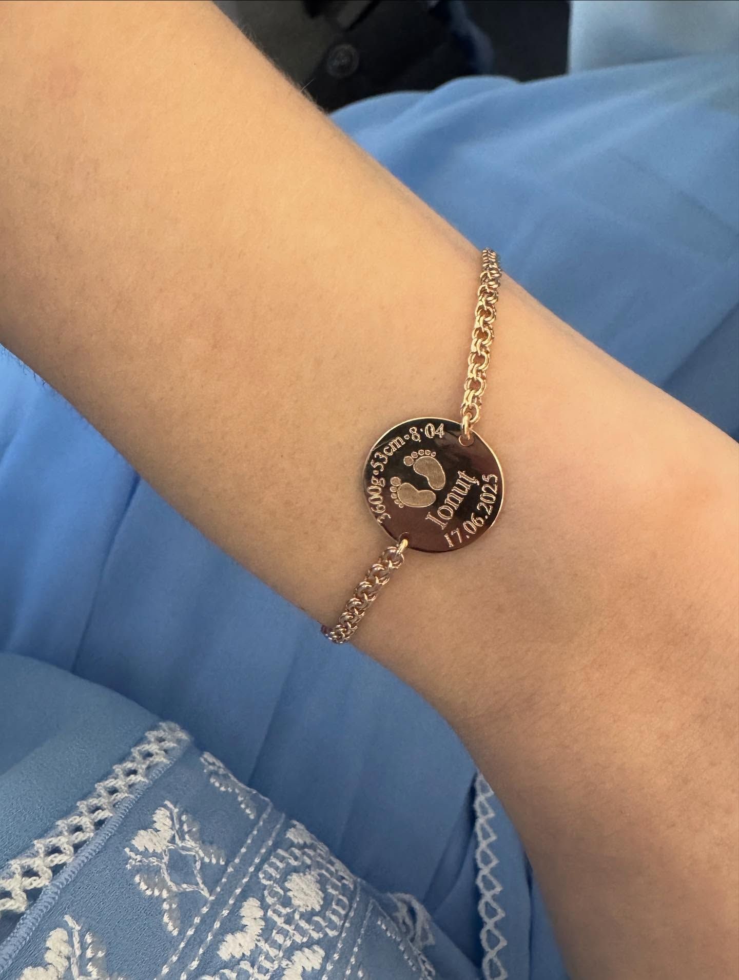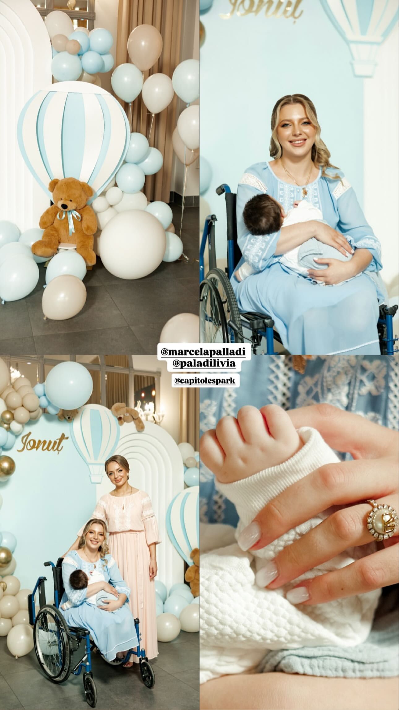 De asemenea, Marcela a optat și pentru niște cadouri personalizate pentru invitați - brățări cu inscripția numelui bebelușului, alături de alte detalii precum data nașterii, ora, kilogramele, centimetrii.