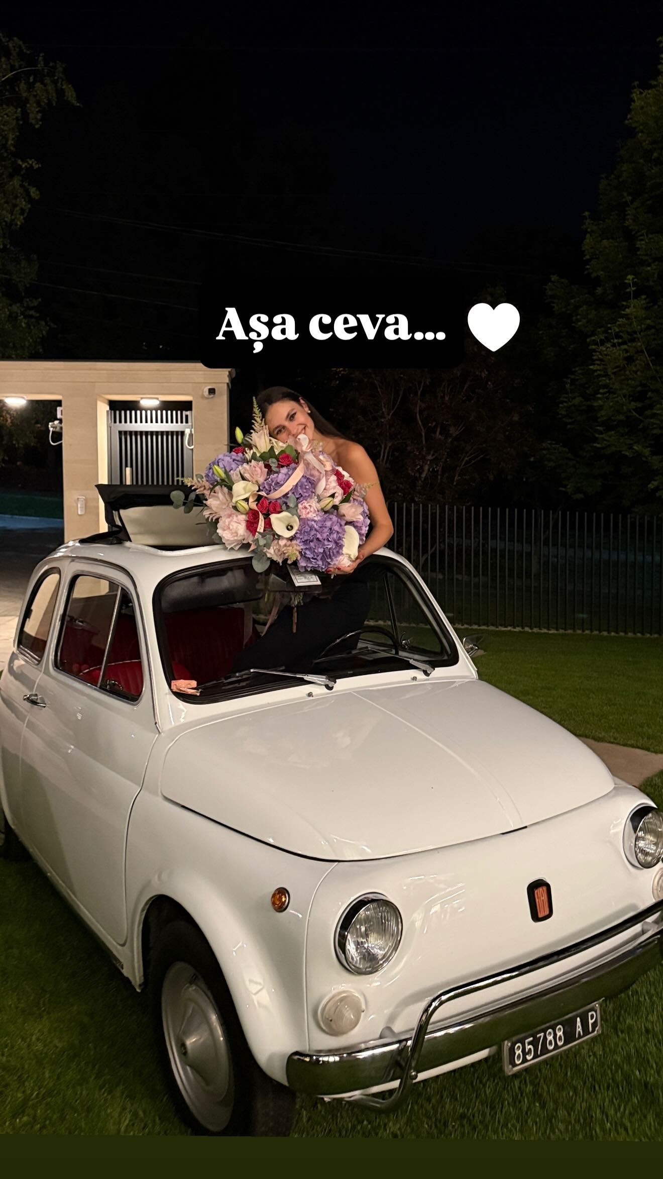 Influencerița Nina Crețu și-a primit mașina chiar la miezul nopții. Este vorba despre un automobil clasic de epocă, un Fiat 500 din 1969.