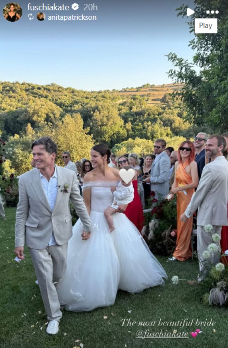 Pentru cununia civilă, Kate a purtat o rochie albă din dantelă, iar Max a ales o ținută inedită, în tonuri de teracotă. A urmat cina festivă, unde s-a dansat până dimineața pe ritmuri de Stevie Wonder și muzică disco.