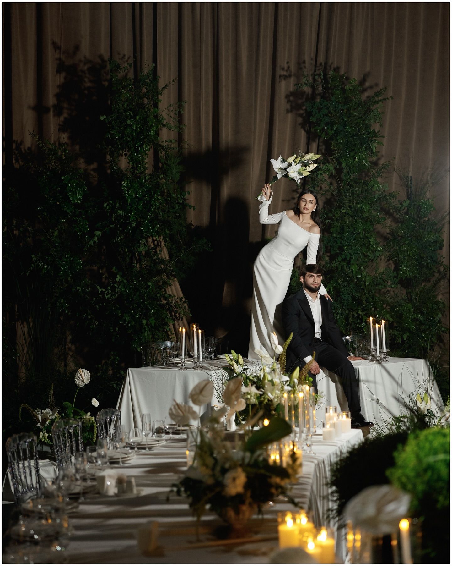 Decorul a fost unul spectaculos, dominat de crini, florile preferate ale miresei, care au transformat spațiul într-un veritabil colț de basm.