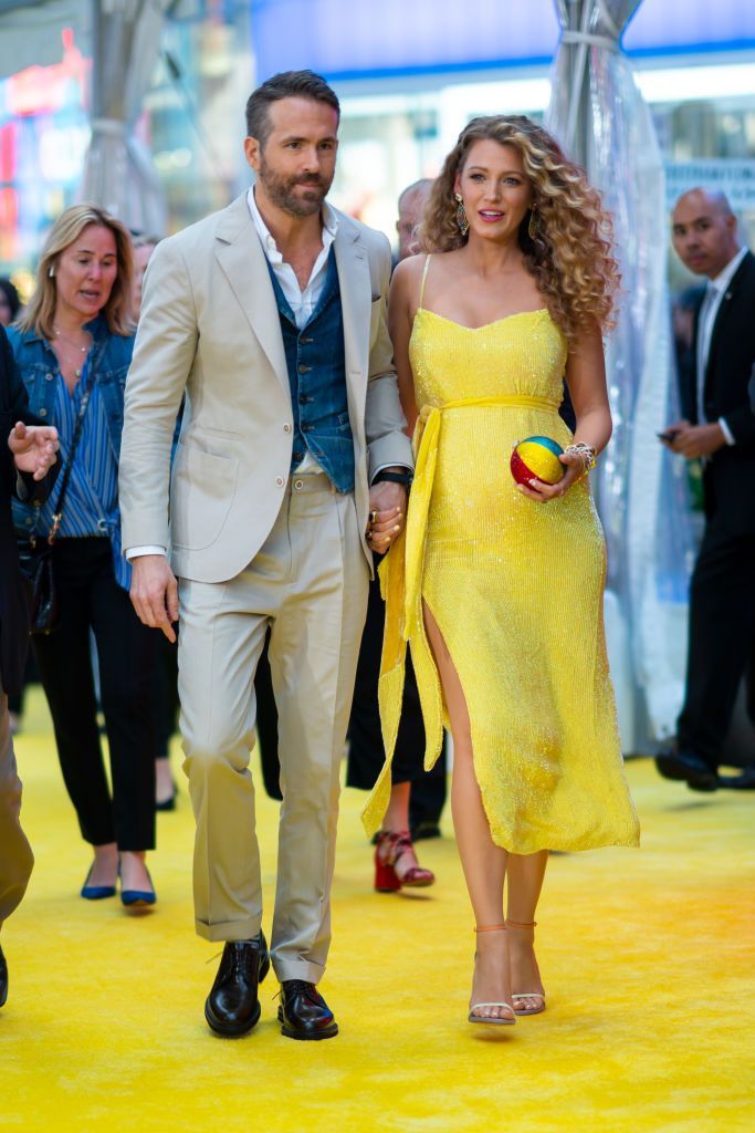 Vedeta din serialul „Gossip Girl” si-a aratat burtica destul de impresionanta intr-o rochie galbena Retrofete. Aceasta a venit la premiera insotita de sotul ei, Ryan Reynolds.