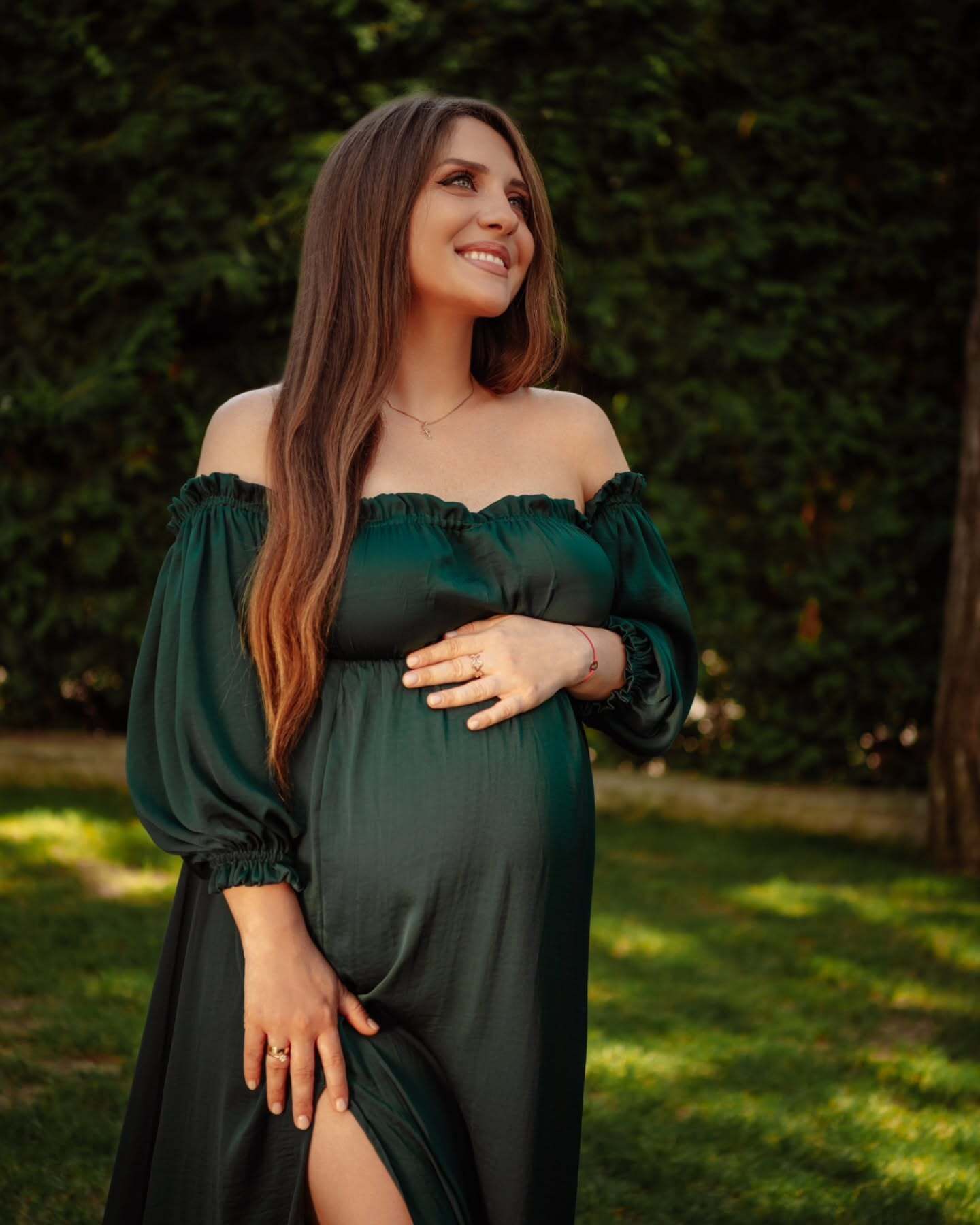 A devenit pentru prima dată mămică, iar acest lucru a venit cu multe emoţii: „Nu mai am 18 ani și respectiv, aveam gânduri și trăirile mele, dar alături de medicul pe care l-am ales să-mi duc sarcina, să monitorizeze sarcina și însuși să fie cel care-mi primește sarcina, totul a decurs bine și m-am încredințat lui. Nu am citit pe Internet, când îmi apărea o întrebare în primul rând îl telefoanam pe el și nu căutam răspunsuri pe Internet. Vreau să încurajez toate femeile care sunt acum însărcinate să facă la fel, să găsească un medic bun și de acolo să se informeze pentru că, Internetul poate să ne aducă mai multe probleme într-o asemenea situație decât o rezolvare a problemei”.