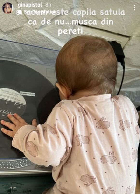 Fetita Ginei Pistol se plimba prin casa si exploreaza camerele, iar atunci cand in cale ii apare un obiect de mobilier nu sta pe ganduri si isi infinge dintisorii in el. Fanii Ginei au fost amuzanti de imaginile incarcate de vedeta si induiosati de curiozitatea fetitei.