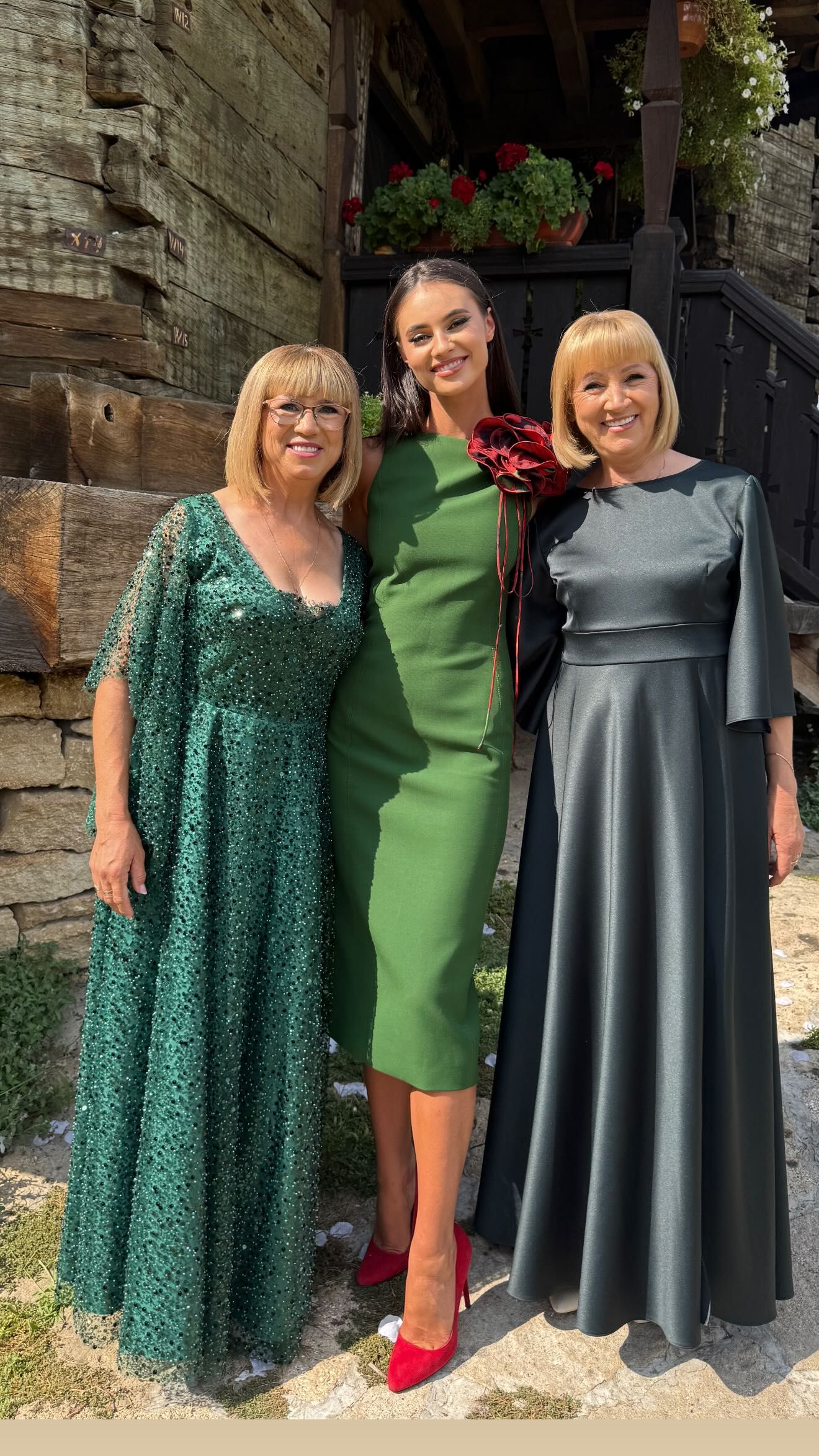 La cununia religioasă, Nina, mama ei, dar și mătușa, au purtat rochii de culoare verde.