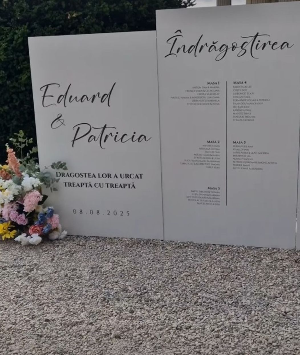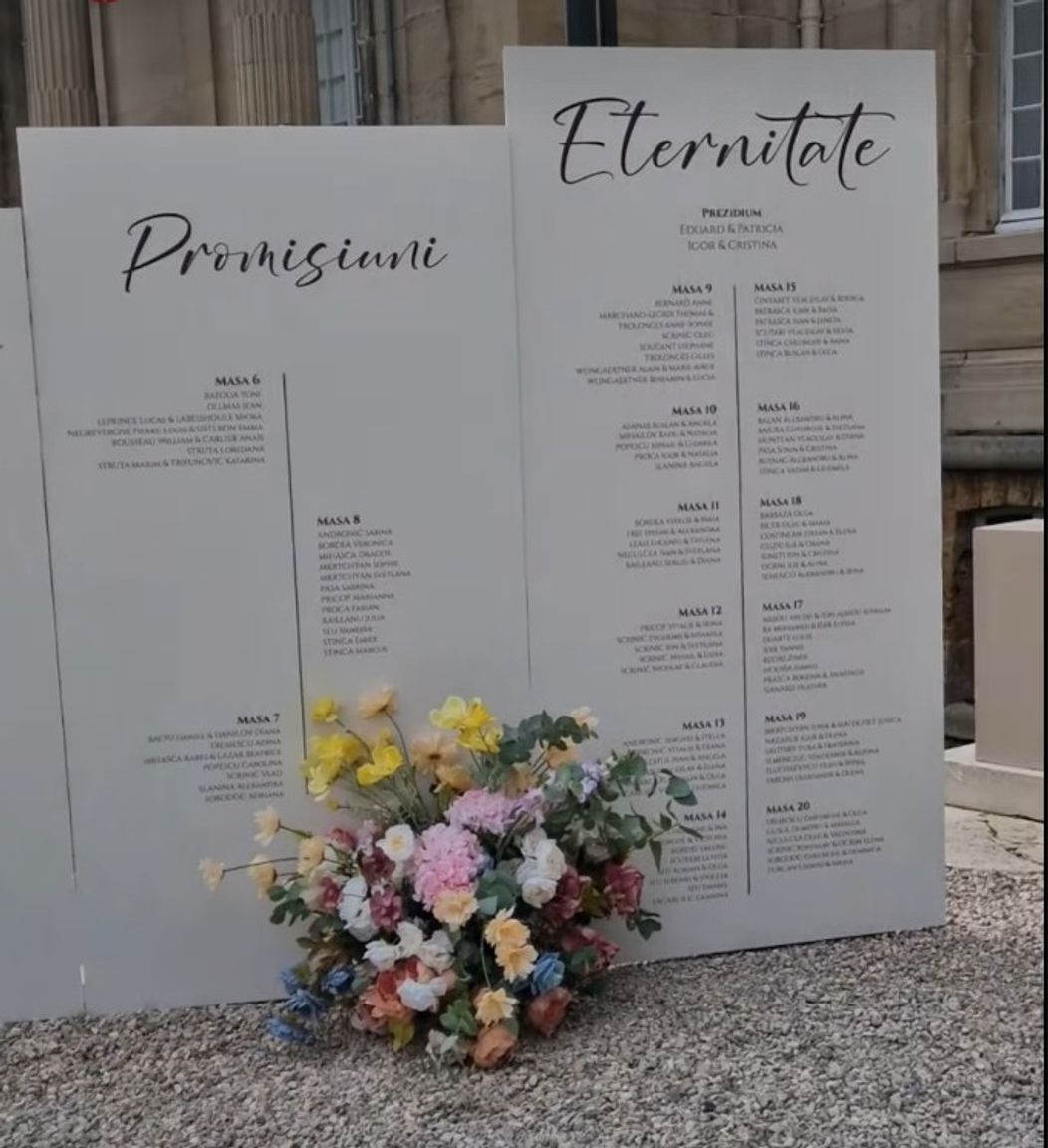 La intrare, locurile oaspeților la mese erau afișate pe niște panouri imense.