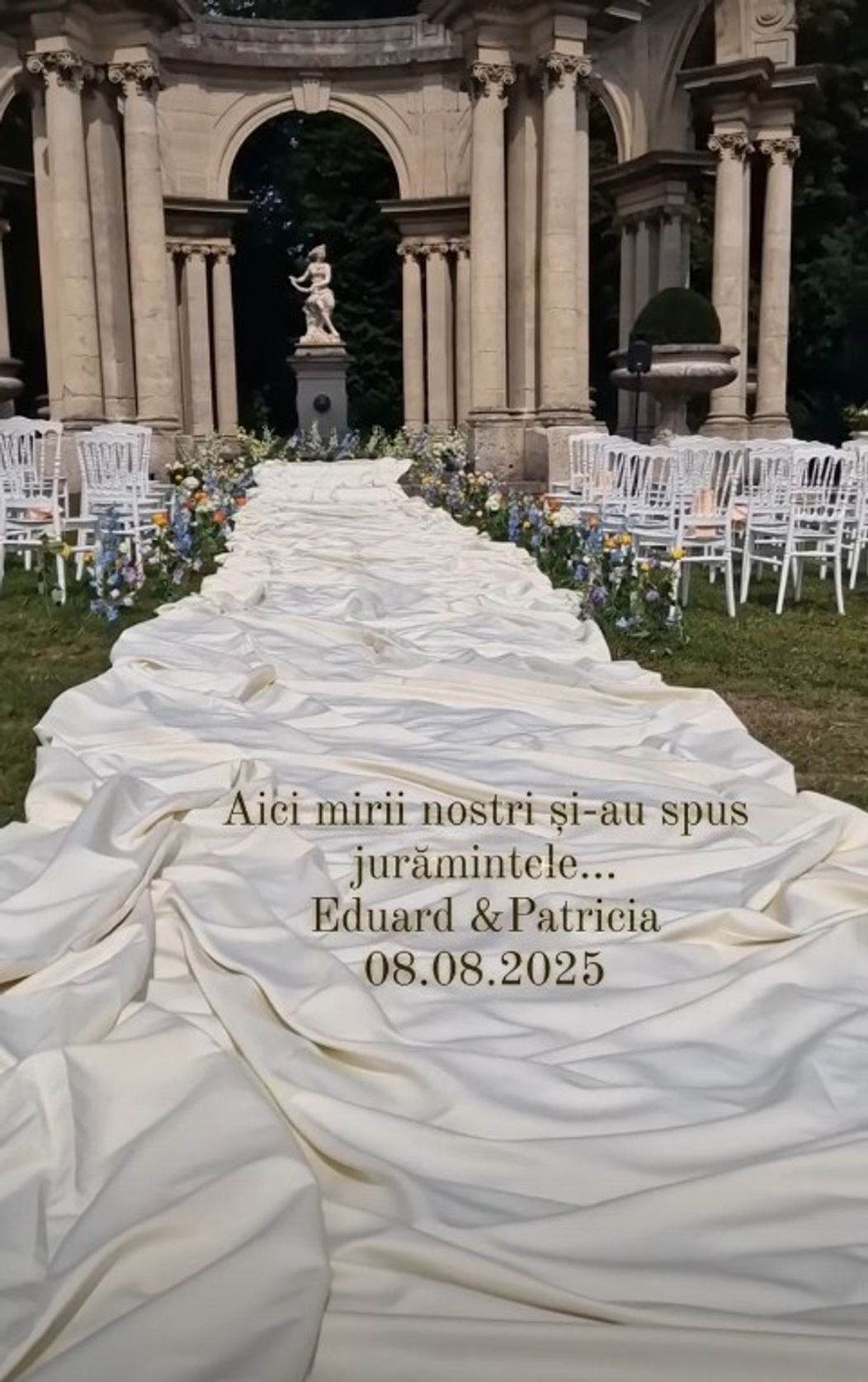​Eduard și Patricia au avut parte de o nuntă ca-n povești, organizată cu rafinament și pasiune pentru frumos. Doi tineri din Republica Moldova și-au unit destinele la Château de Saint Martin du Tertre, un palat de vis din Franța, unde fiecare detaliu a fost pus la punct de echipe din mai multe țări. Orchestra a fost adusă din Germania, meniul rafinat a venit direct de la Paris, iar evenimentul a fost prezentat cu grație de Lilu Ojovan, una dintre cele mai cunoscute moderatoare din Republica Moldova. Momentul de senzație a fost atunci când mireasa a sosit pe pajiștea din fața palatului cu elicopterul, însoțită de tatăl ei, un tablou desprins parcă dintr-un film romantic.