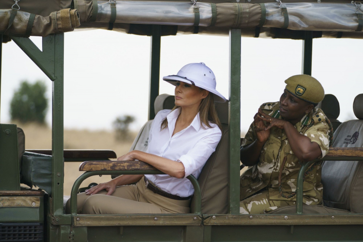 Palarie. Este o mare greseala faptul ca Melania Trump a ales sa poarte o casca in Kenya - pentru multi este un simbol al colonialismului european”, a scris pe Twitter New York Times.
