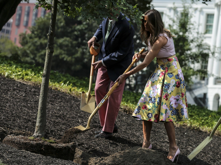 Cum va imbracati daca sapati in gradina? Melania a ales o camasa Balmain de 1.000 de dolari
