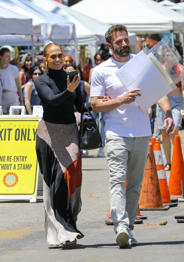 Nici programul incarcat nu ii impiedica pe indragostiti sa petreaca timp impreuna. De exemplu, recent J. Lo a fost remarcata pe strazile din Santa Monica, unde a venit sa-si sustina logodnicul pe platourile de filmare. Atunci vedeta a purtat o rochie neagra cu bretele subtiri si decolteu adanc.