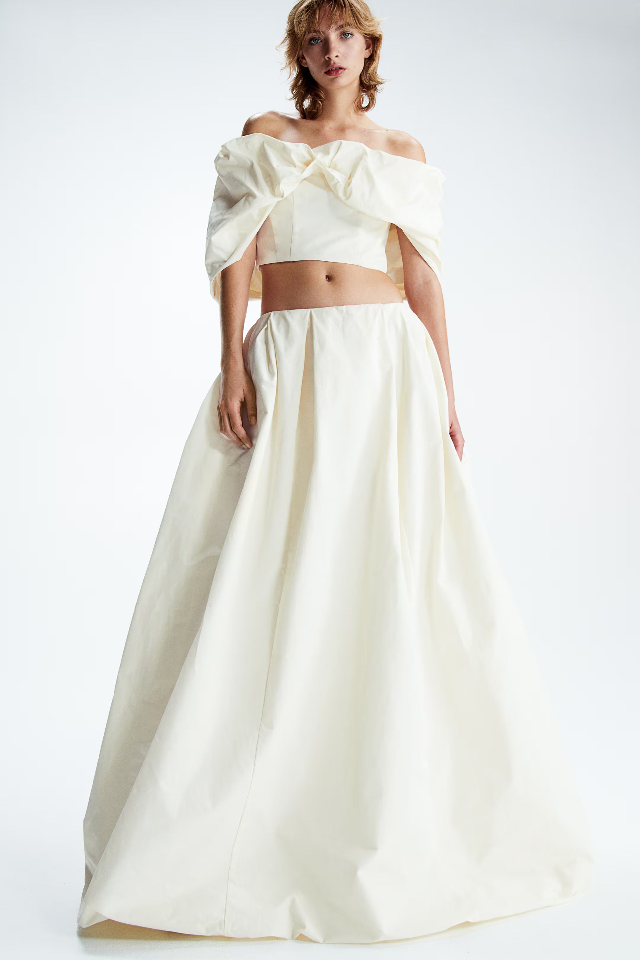 3. O fustă bufantă de lungime maxi sau midi (o poți combina cu topuri cu umeri goi)