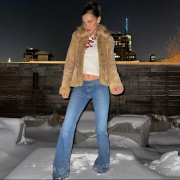 De aceasta data modelul a fost observat intr-o tinuta de-a dreptul interesanta. Look-ul sau este totalmente asemanator celor din anii 90. Astfel de rochii tricotate cu siguranta nu se gasesc acum pe vitrinele magazinelor.