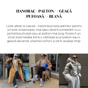 Pentru un look urban și casual, stilista recomandă să porți hanoracul tău preferat cu un platon, de ce nu, sau chiar cu o geacă pufoasă, ori blană: „Hanoracul este perfect pentru un look streetwear, mai ales când îl combinăm cu o jachetă pufoasă sau un palton mai lung. Poate fi un strat intermediar între o cămașă și un palton sau o geacă de iarnă, oferind confort și stil în același timp”.