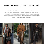„Articolele din piele sunt ideale pentru iarnă datorită durabilității și protecției împotriva frigului. Geci și jachete din piele căptușite, pantaloni din piele, cizme impermeabile și mănuși cu interior din lână sunt esențiale pentru a menține căldura și a adăuga un plus de stil”, a notat Korina.