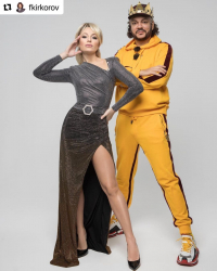 Alaturi de interpreta se afla si Filip Kirkorov, care, la fel, are o tinuta deosebita. Imbracat intr-un pulover roz, cu pantaloni de un albastru aprins si adidasii roz pe care ii are in picioare, il fac pe artist sa atraga toate privirile. Spre deosebire de primii doi, Valentin Yudashkin a optat sa poarte la aceasta intalnire ceva lejer, care sa-i ofere un confort garantat si o prezenta rafinata, fara elemente deosebite.