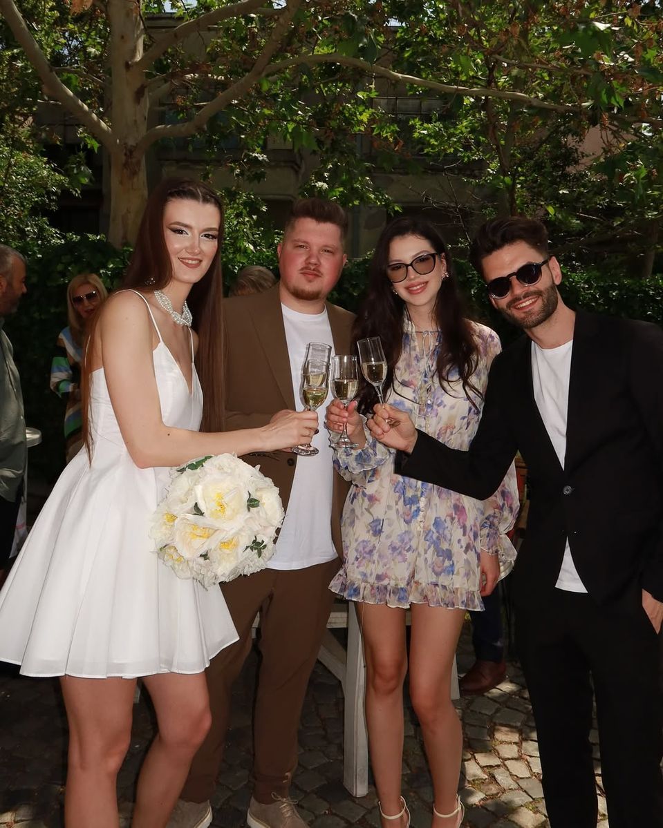 „Casă de piatră, dragii noștri finuți! Vă mulțumim că ne-ați ales să vă fim nași și vă dorim să vă iubiți CEL PUȚIN O VEȘNICIE! Vă iubim!”, a scris Cleopatra Stratan pe Instagram.