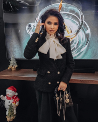 „Eu foarte mult ador paietele. In acesta rochie as merge daca as face o cumatrie, o cununie, arata senzational. Mie imi plac si rochiile lungi, deci cand am fost nasa, eu am purtat rochii de tip sirena si cu trena lunga, eu ador rochiile cu trena lunga, deoarece arata superb si intr-o sedinta foto.”