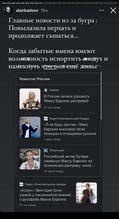 Regizorul de asemenea a raspuns Victoriei Bonya si lui Oscar Kucer, care il critica activ pe Barskih. „Sunt niste persoane care nu mai stiu cum sa atraga atentie, pentru ca toti ii uita”, a adaugat Badoev.