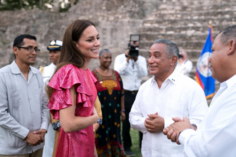 Ducele si ducesa de Cambridge se afla in aceste zile in Belize, tara din America de Sud, ca parte a turnelui lor regal. Kate si printul William au participat la cateva activitati locale, care au inclus si o vizita la un sit antic mayas, care presupune urcarea unor trepte prin jungla. Ducesa de Cambridge, in varsta de 40 de ani, a purtat o pereche de pantaloni kaki si un tricou simplu alb, accesorizand tinuta cu o pereche de pantofi sport albi si ochelari de soare.