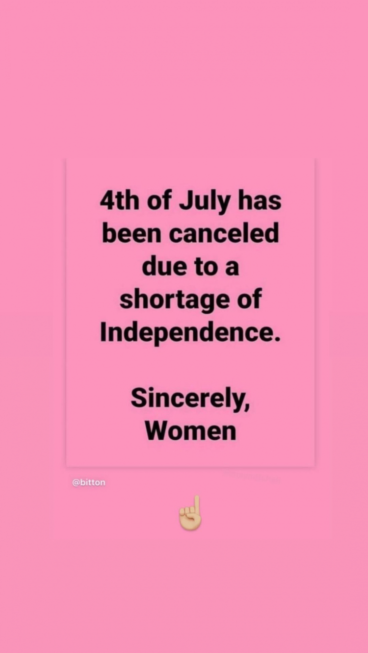 Kim Kardashian a fost una dintre primele vedete care a comentat acest subiect. „Ziua de 4 iulie a fost anulata anume din cauza lipsei de independenta. Cu stima pentru toate femeile”, a scris ea.