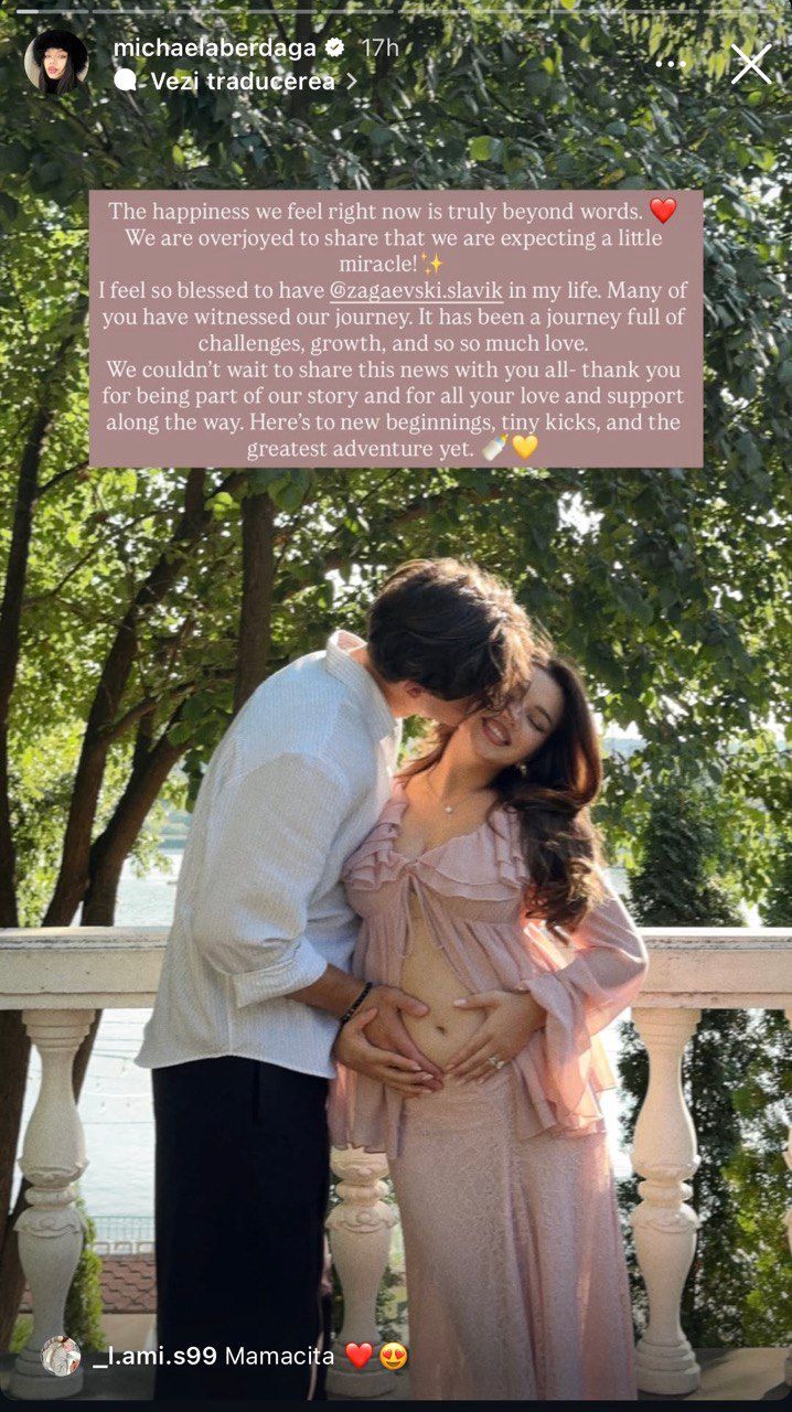 „Fericirea pe care o simțim acum este cu adevărat imposibil de exprimat. Suntem extrem de bucuroși să vă împărtășim că așteptăm un mic miracol”, a scris Michaela Berdaga.
