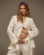 Anastasia apare intr-un costum de culoare ivory, format din sacou si pantaloni evazati, graviduta si-a etalat frumos burtica. Iar in descrierea pozelor a scris ca: „Cu siguranta cea mai frumoasa silueta este cea de graviduta.”