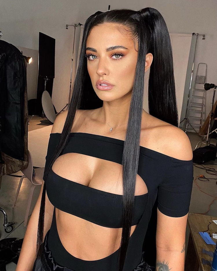 Totodata, cantareata a facut publica si o alta fotografie in care apare purtand niste pantaloni evazati, pe care i-a asortat cu o bustiera ce are aplicate strasuri, dar si cu un sacou pe care-l poarta neglijent pe umeri.