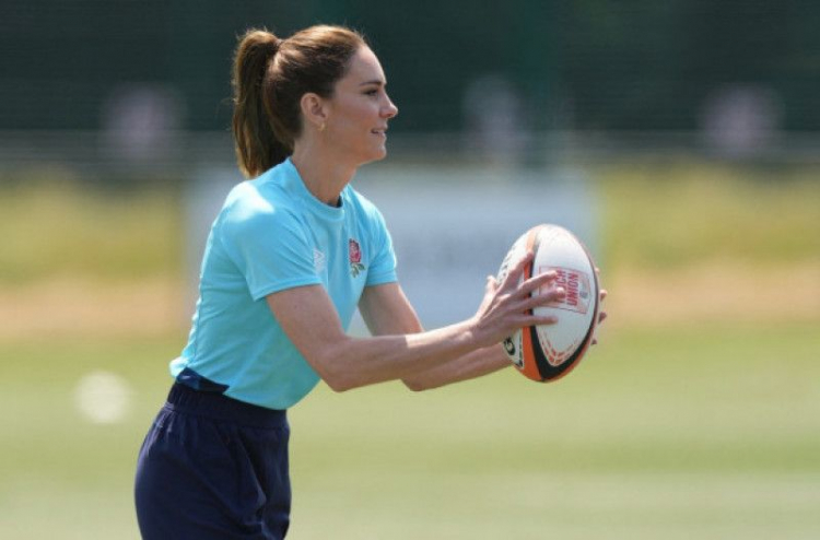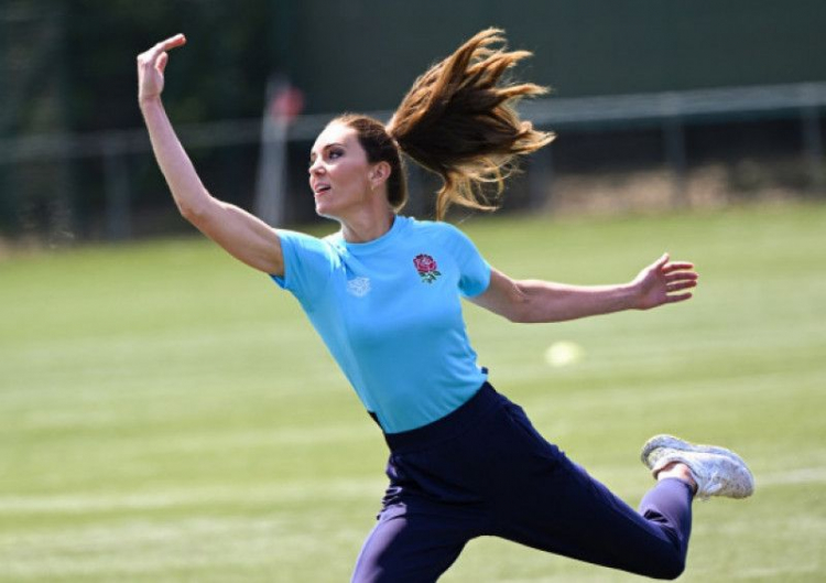 In pantofi sport, pantaloni de trening si un tricou al nationalei de rugby a Angliei, cu parul prins intr-o coada simpla, sotia printului William s-a bagat la un joc de rugby, la un club de profil. Nu a renuntat insa la inelul de logodna, bijuteria care i-a apartinut printesei Diana.