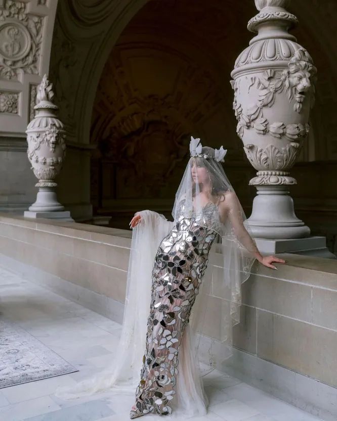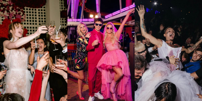 Sarbatoarea, care a adunat aproximativ 450 de invitati, a durat cateva zile si a fost o adevarata feerie. Rochiile sale de mireasa (a avut cateva) sunt facute de John Gallianno insusi.