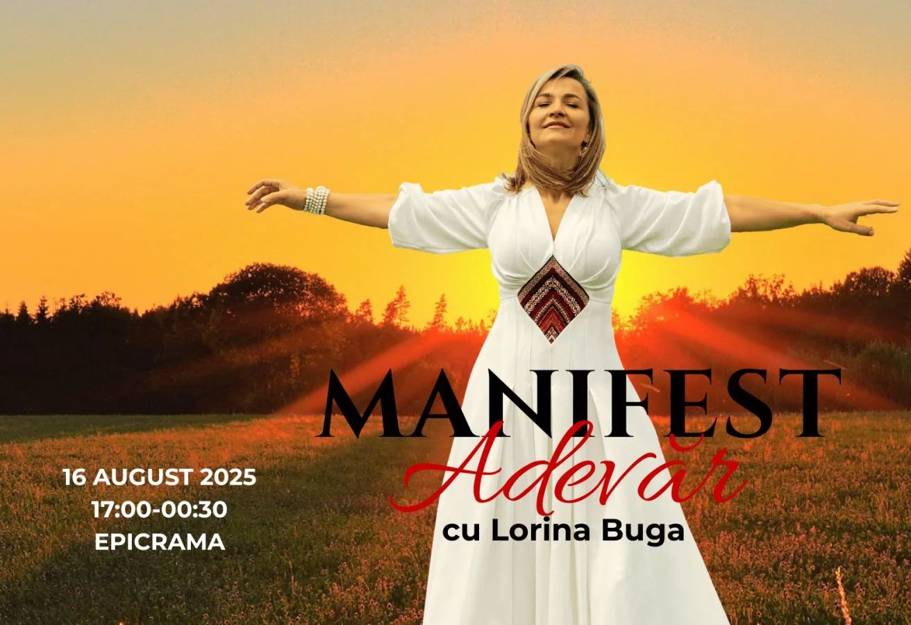 La Epicrama din Stăuceni, pe 16 august, are loc MANIFEST ADEVĂR – un eveniment creativ și terapeutic ghidat de Lorina Buga, dedicat celor care vor să trăiască autentic și să se reconecteze cu sinele lor profund. Evenimentul se desfășoară între orele 17:00 și 01:00, în aer liber, și include cină, gustări și pauze de relaxare. Programul cuprinde cinci sesiuni de meditație, exprimare emoțională, vindecare prin sunet și dans liber.