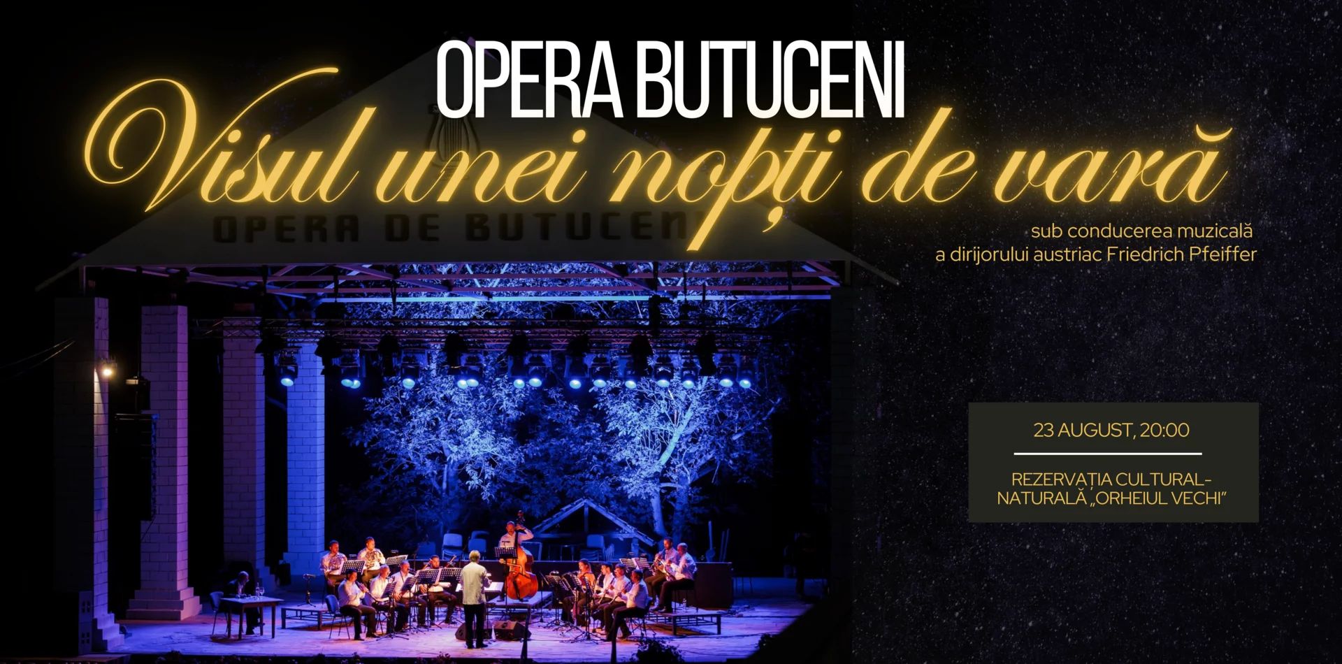 În satul Butuceni, pe 23 august 2025, de la ora 20:00, are loc spectacolul de operă „Visul unei nopți de vară”. Evenimentul, dirijat de austriacul Friedrich Pfeiffer, promite o seară memorabilă sub cerul liber, cu muzică, emoție și eleganță, într-un decor natural deosebit.