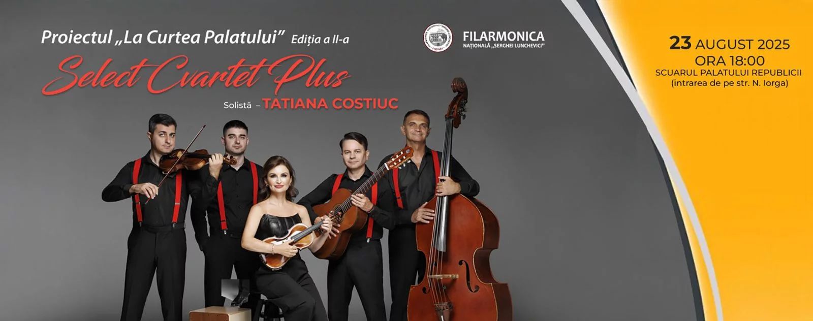 În curtea Palatului Republicii va avea loc pe 23 august, de la ora 18:00, recitalul Latino Meets Balkan Music, susținut de Select Cvartet Plus și soprana Tatiana Costiuc. Evenimentul îmbină muzica latino și balcanică cu povești despre stiluri, origini și influențe culturale, într-o atmosferă relaxată, sub cerul liber.