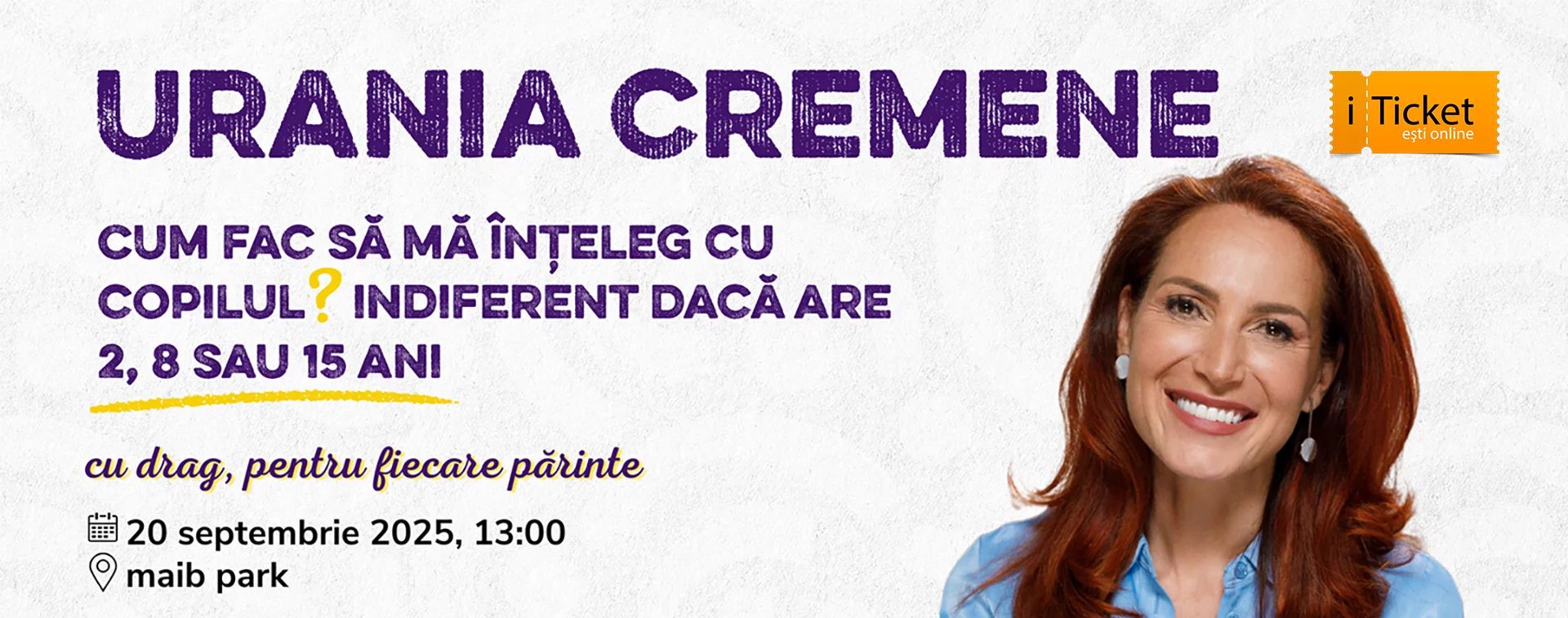 În curând, mai exact pe data de 20 septembrie, la Maib Park (Chișinău), va avea loc conferința „Cum să mă înțeleg cu copilul, indiferent dacă are 2, 8 sau 15 ani?”, susținută de experta în parenting din România, Urania Cremene. Evenimentul începe la ora 14:00 (accesul se face de la 13:00) și se adresează părinților și specialiștilor în educație, care doresc să construiască relații autentice cu copiii, bazate pe respect, empatie și echilibru emoțional. Temele abordate vizează cooperarea fără pedepse, înțelegerea emoțiilor copilului și creșterea responsabilă.