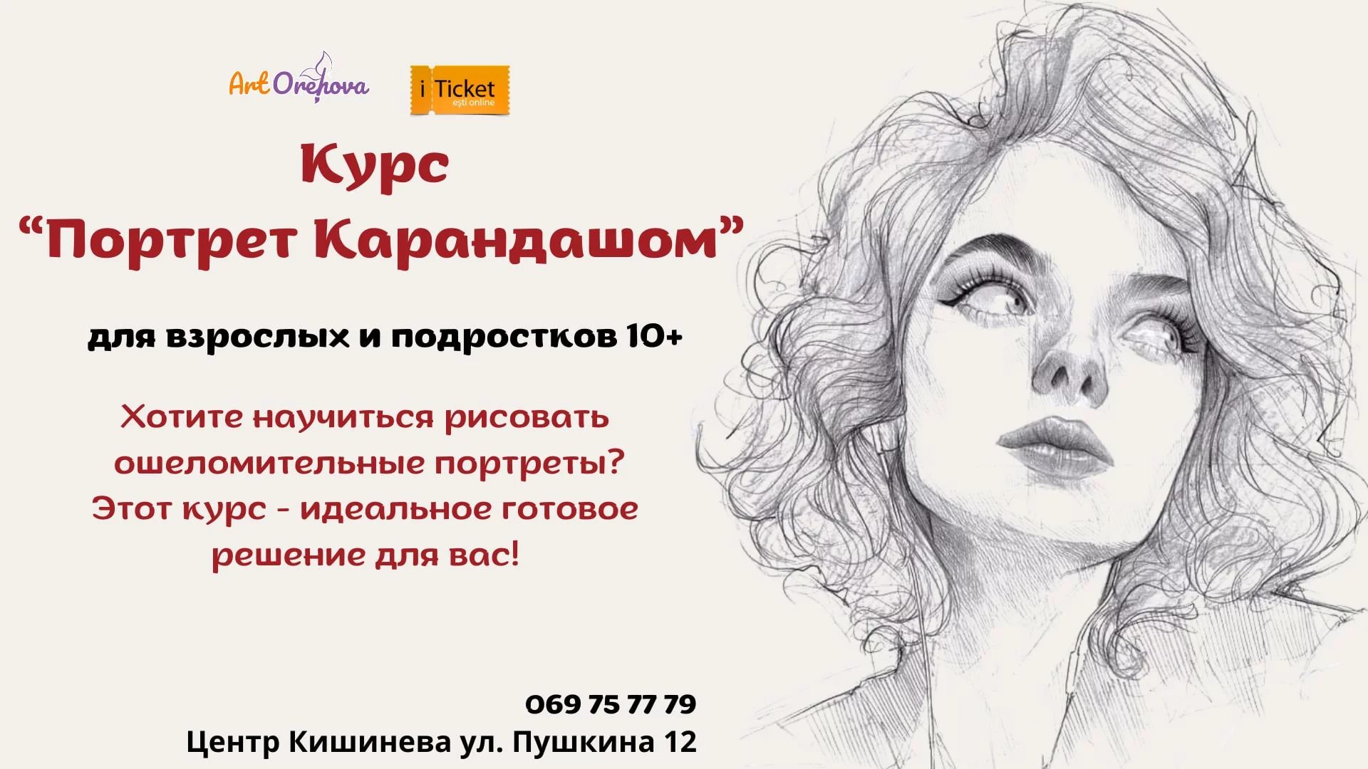 Doriți să învățați să redați frumusețea feței feminine cu un creion? Acest curs vă va ajuta să descoperiți tehnicile de desen, de la proporțiile feței și detalii (ochi, buze, nas, păr) până la crearea unui portret realist cu ajutorul luminii și umbrei. Cursul este atât pentru începători cât și avansați. Lecțiile se vor desfășura timp de 8 săptămâni, din această sâmbătă, de la 10:00 și până la 12:00, în centrul Chișinăului (str. Pușkin 12). Locurile sunt limitate!