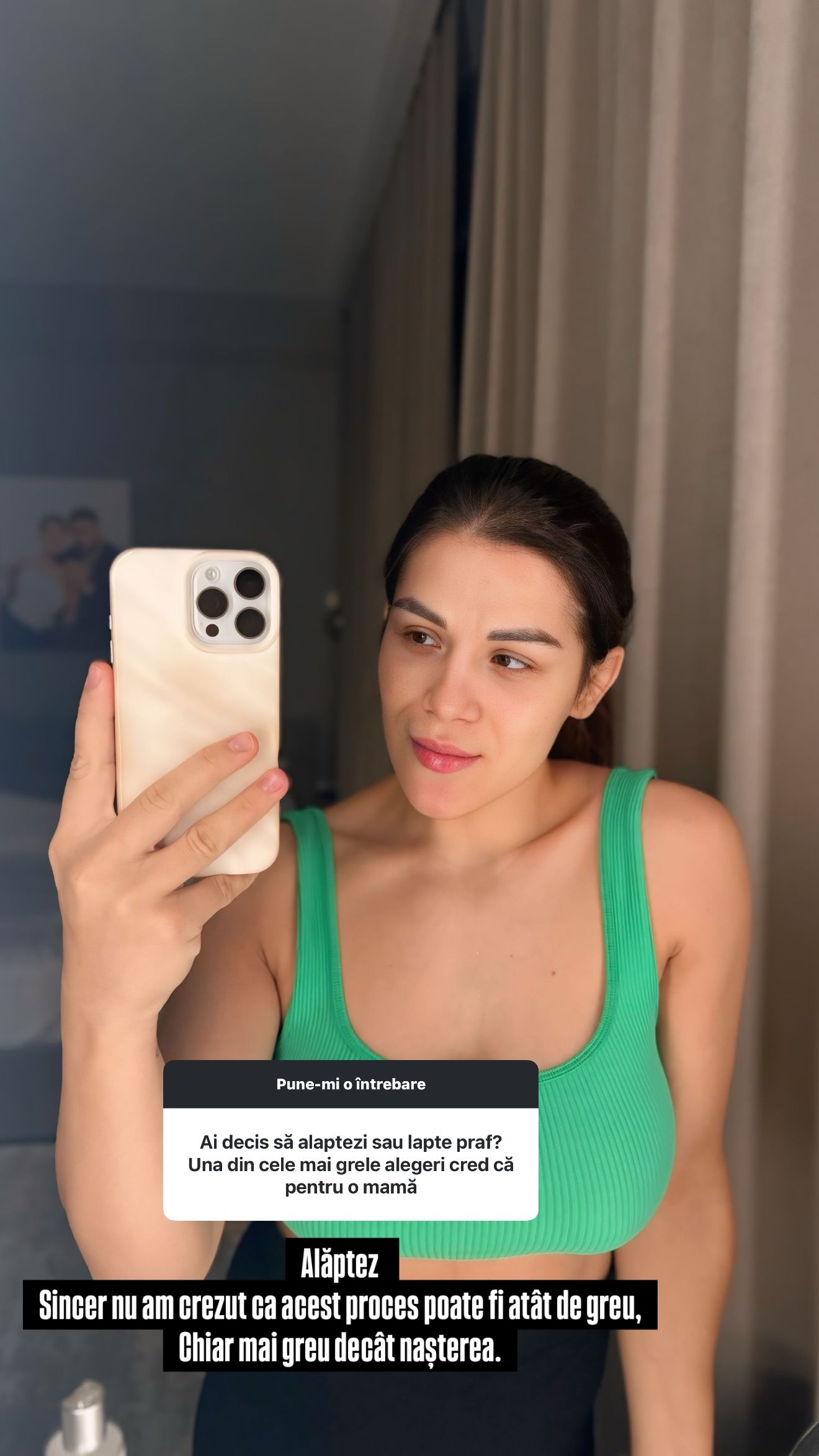 „Alăptez. Sincer nu am crezut că acest proces poate fi atât de greu. Chiar mai greu decât nașterea”, a menționat Nichita într-un alt InstaStory.
