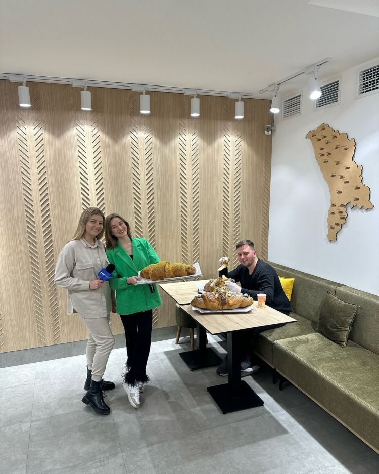 Reporterul Pro TV Dina Munteanu, a mers impreuna cu interpreta Reghina-Alexandrina intr-un local din Chisinau, pentru a sarbatori ziua Croissantului. Fetele au ales un croissant gigant cu multa ciocolata si l-au impartit in doua jumatati.
