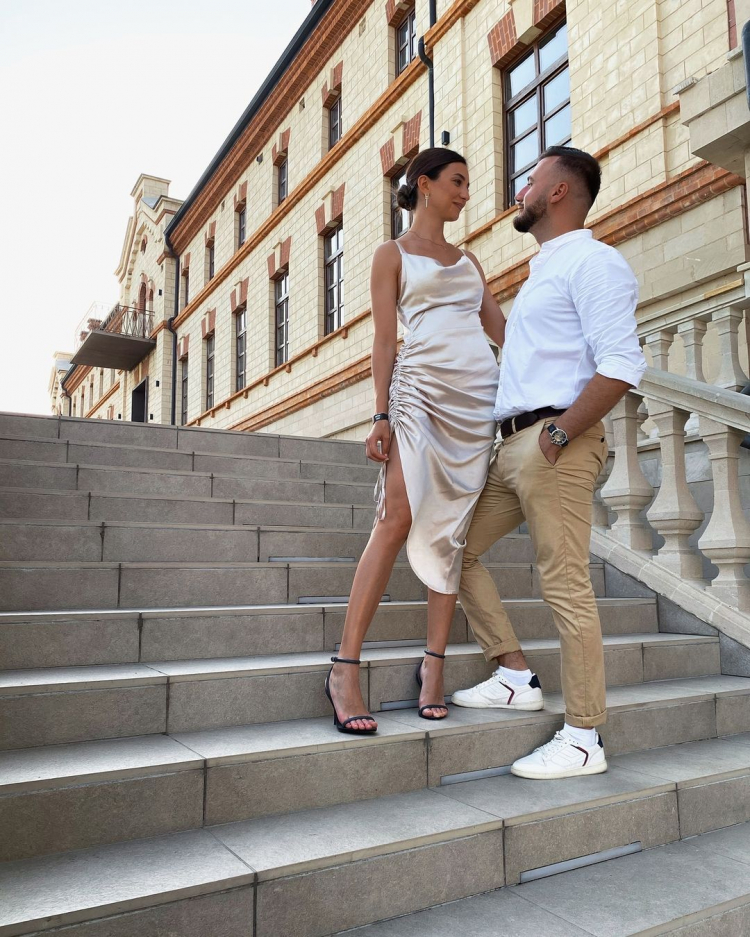 IULIANA: „Dumitru este un barbat carismatic si asta mi-a placut si imi place cel mai mult la el. Eu fiind mai timida, taceam mult la inceput. Dar asta nu l-a speriat. El vorbea, mult, si imi povestea despre toate. Si asta este una din calitatile care imi plac, investeste timp pentru dezvoltare personala. Si mai este si intelegator, daca ma suporta atat”.