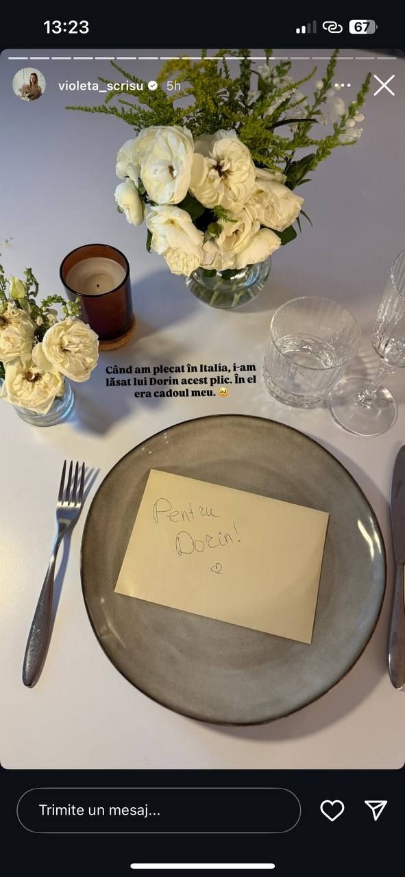 „Când am plecat în Italia, i-am lăsat lui Dorin acest plic. În el era cadoul meu”, a scris Violeta Scrișu.
