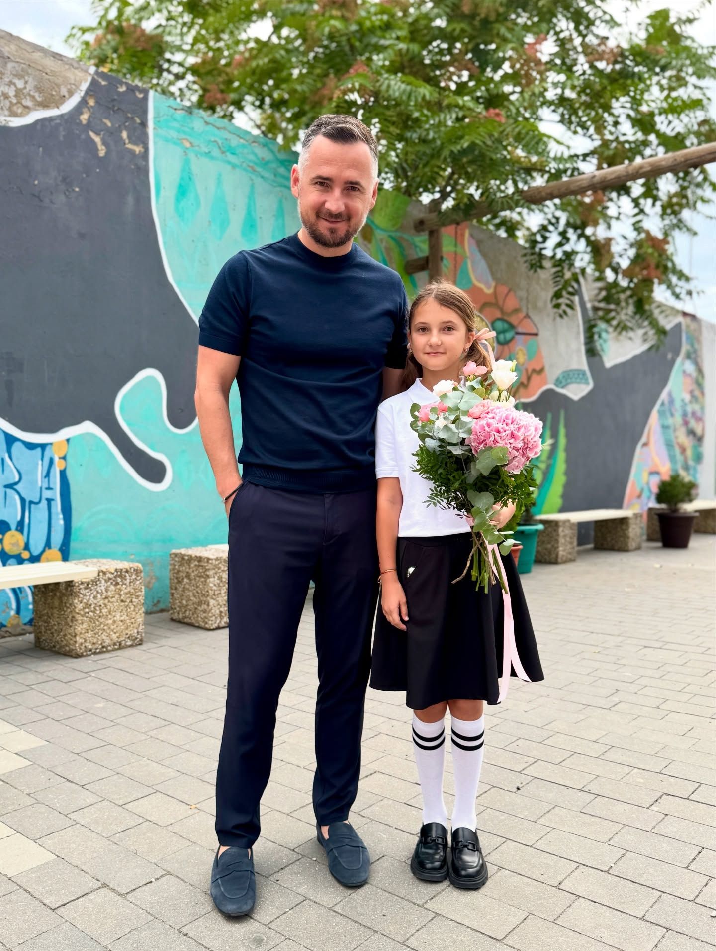 Anișoara Loghin (prezentatoarea emisiunii „O Seară Perfectă”) și Radu Gînsari (fotbalist) - 1 septembrie la grădiniță