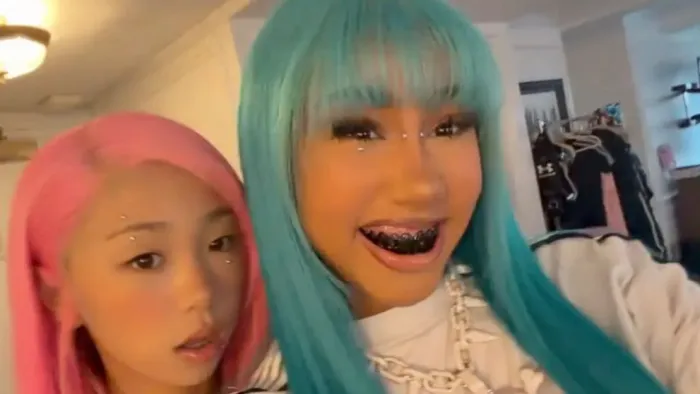 Fiica cea mare a lui Kardashian și a lui Kanye West s-a distrat cu o prietenă în videoclipurile sale recente. Aceasta are părul roz aprins și piercing-uri faciale care păreau a fi false. „Suntem adevărate staruri rock”, a semnat North. Ea a adăugat: „Asta e pentru toți cei supărați din cauza unui piercing pe deget”.