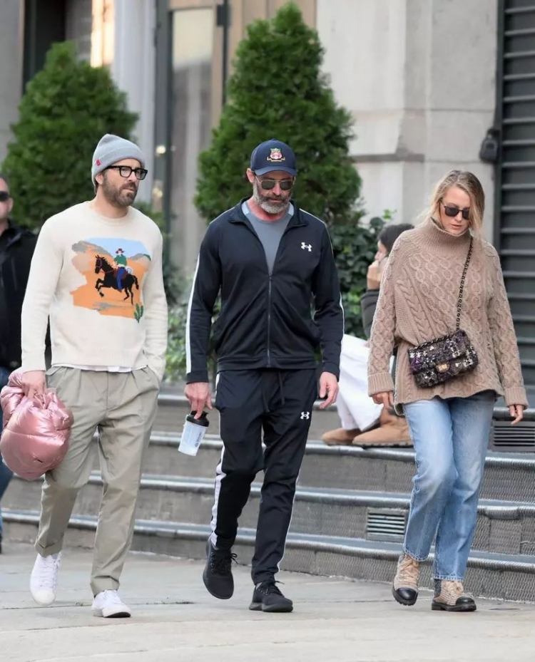 Pentru plimbare, Hugh Jackman a ales o tinuta casual, purtand un trening Under Armour negru, pe care l-a accesorizat cu o sapca si o pereche de ochelari. Blake Lively si Ryan Reynolds, in schimb, au optat pentru tinute asortate, in nuante de bej.