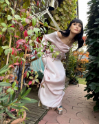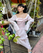 Interpreta a ales o rochie foarte romantica, roz pal, cu umerii goi. In stilul deja consacrat, a optat pentru platforme argintii in picioare.