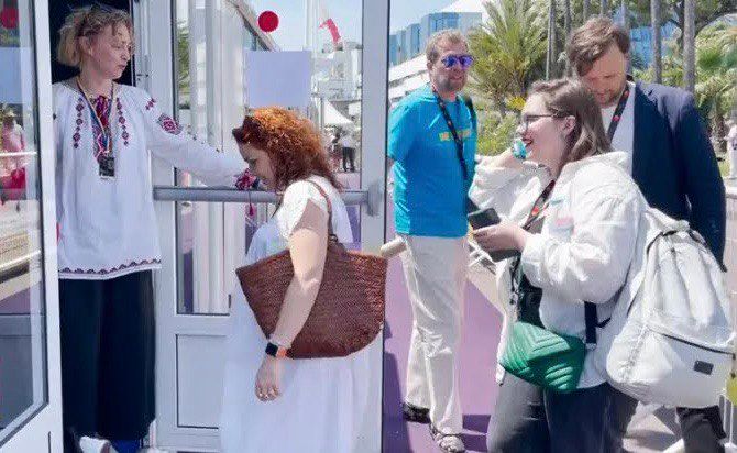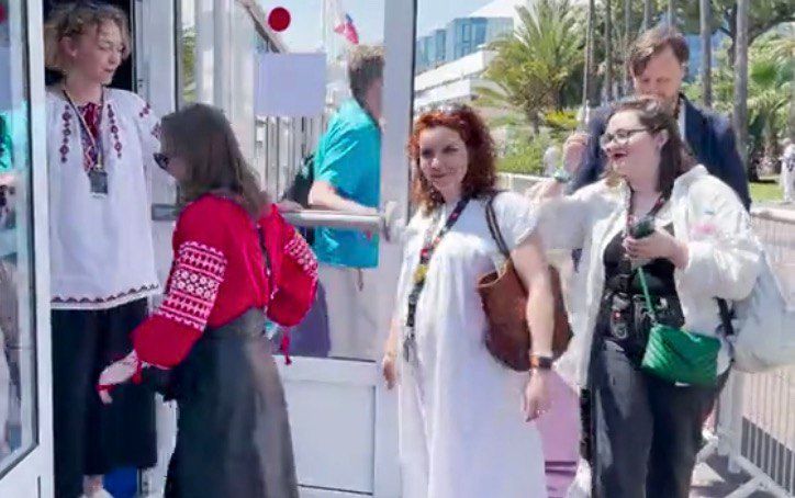 Iubita lui Vakarchuk a intrat in pavilion intr-o rochie alba, larga. Aceasta a refuzat sa dea vreun comentariu la acest subiect.