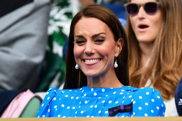 Kate Middleton a dat dovada de eleganta atunci cand si-a facut aparitia la Wimbledon. Aceasta a ales o rochie albastra cu buline albe si a incercat sa adopte o coafura cat mai simpla. Tinuta acesteia a fost creata de Alessandra Rich si a mai fost purtata de Ducesa in trecut.