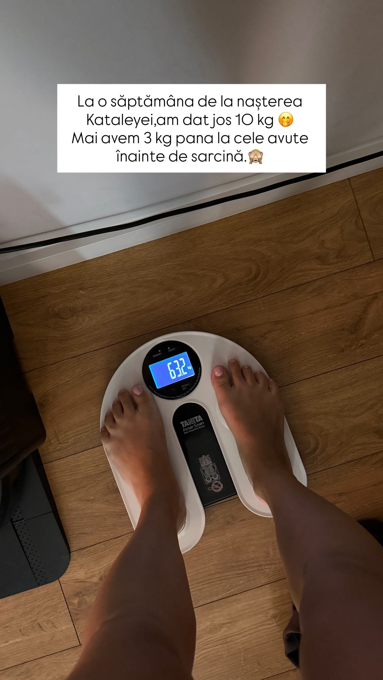 „La o săptămână de la nașterea Kataleyei, am dat jos 10 kilograme. Mai avem 3 kilograme până la cele avute înainte de sarcină”, a explicat Nichita.